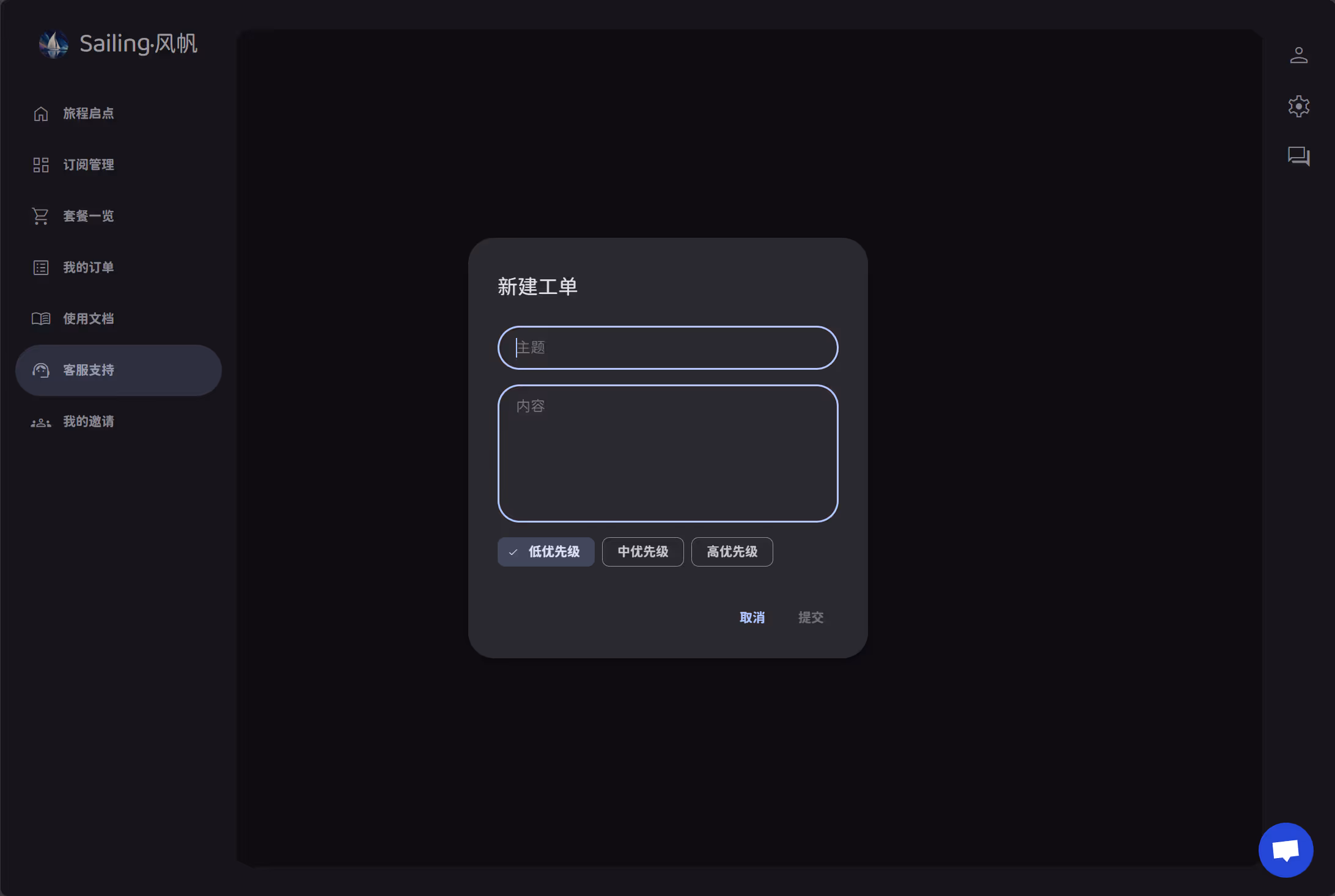 V2Board 支持三个工单等级:低优先级、中优先级 和 高优先级: